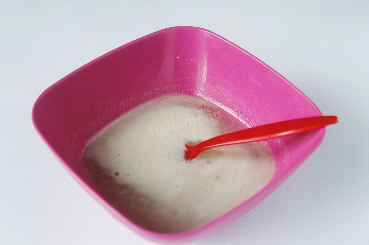 Воду нагріти до 40 градусів в залізній посудині. Перелити в зручну ємність невеликого розміру, всипати дріжджі і цукор, перемішати і залишити в теплі на 10 хвилин, щоб розчинився цукор і утворилася шапочка.