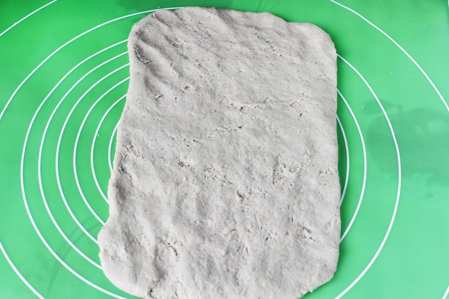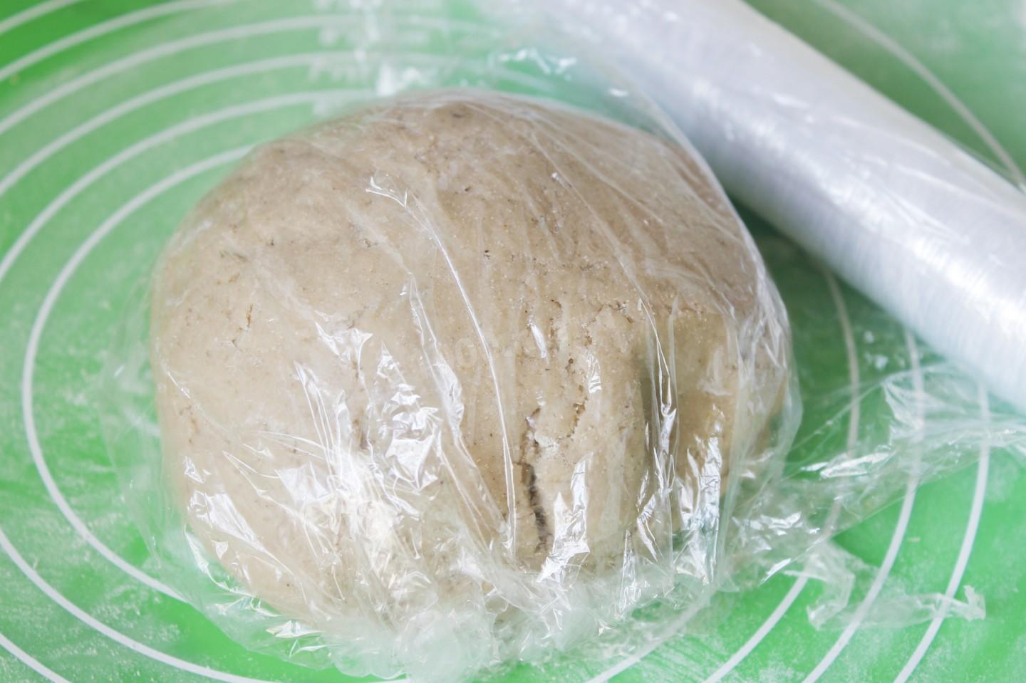 Викладаємо тісто на робочу поверхню і добре вимішуємо руками не менше 10-ти хвилин. Муки більше не знадобиться. Тісто буде вести себе трохи незвично через гречаного борошна, яка не містить клейковину. Формуємо з тіста колобок, обертаємо його плівкою і залишаємо в теплому місці на 1 годину.