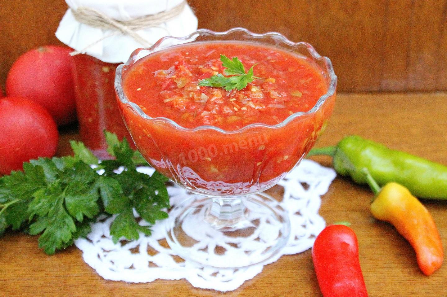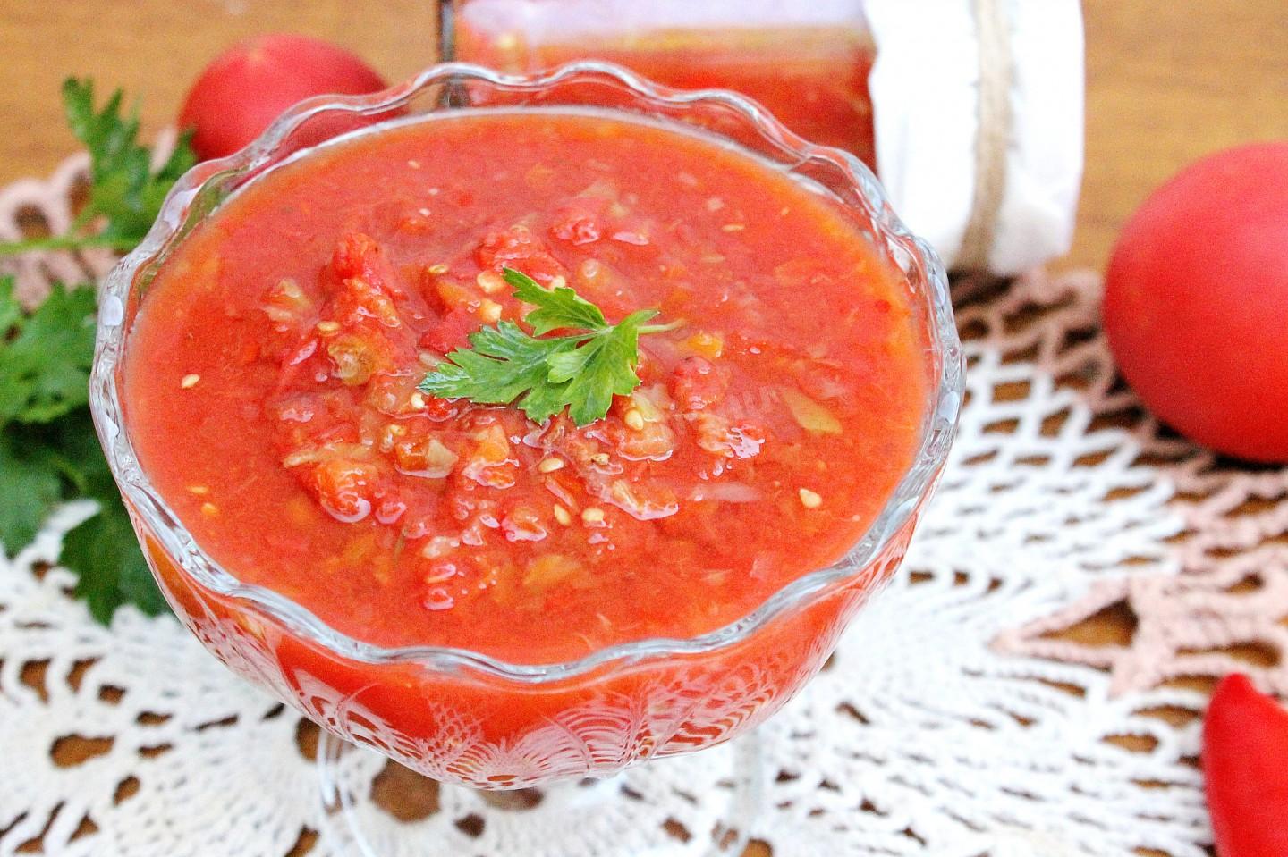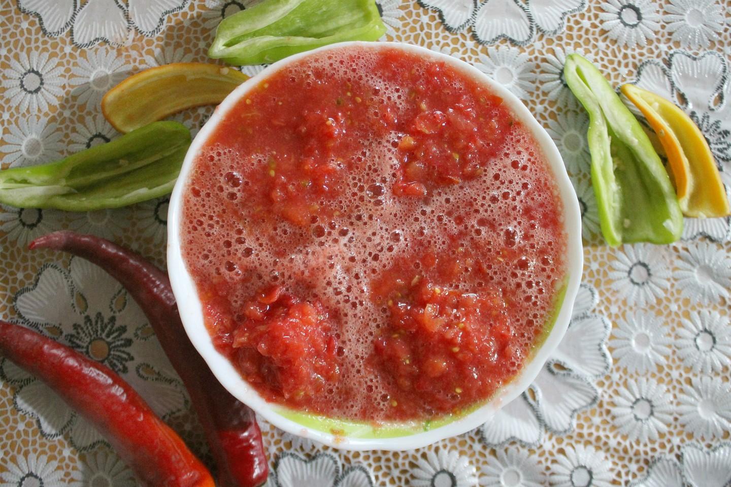 помідорний соус з болгарським перцем стане відмінним доповненням до пельменів або мантам.