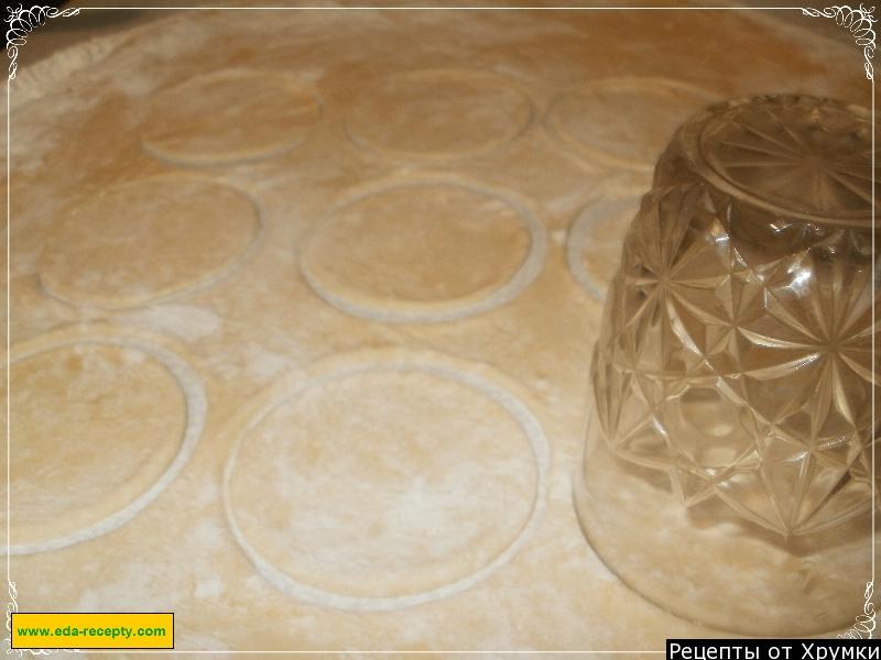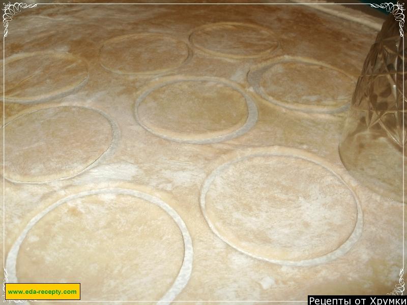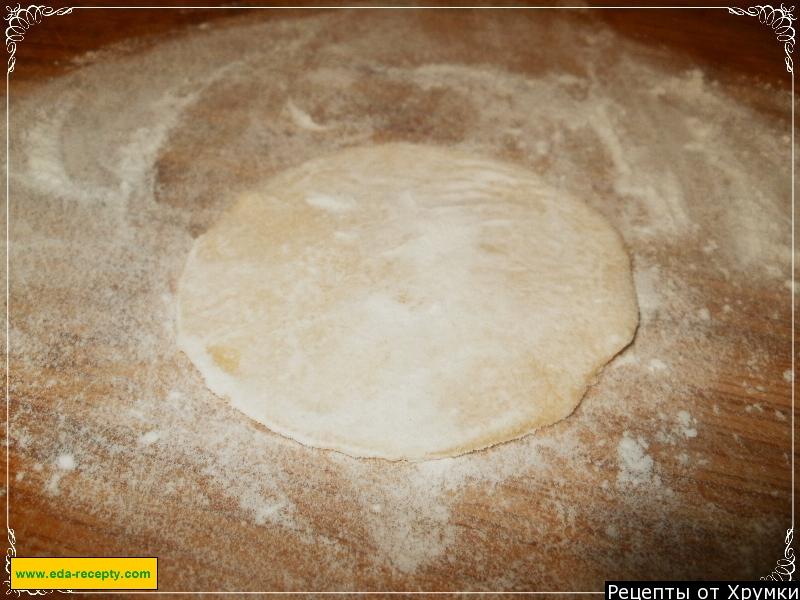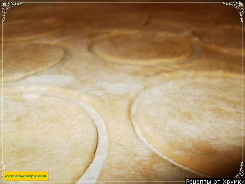3. Тісто розкачати на посипаному борошні столі тонким шаром і сформувати в круглі сканци (див.