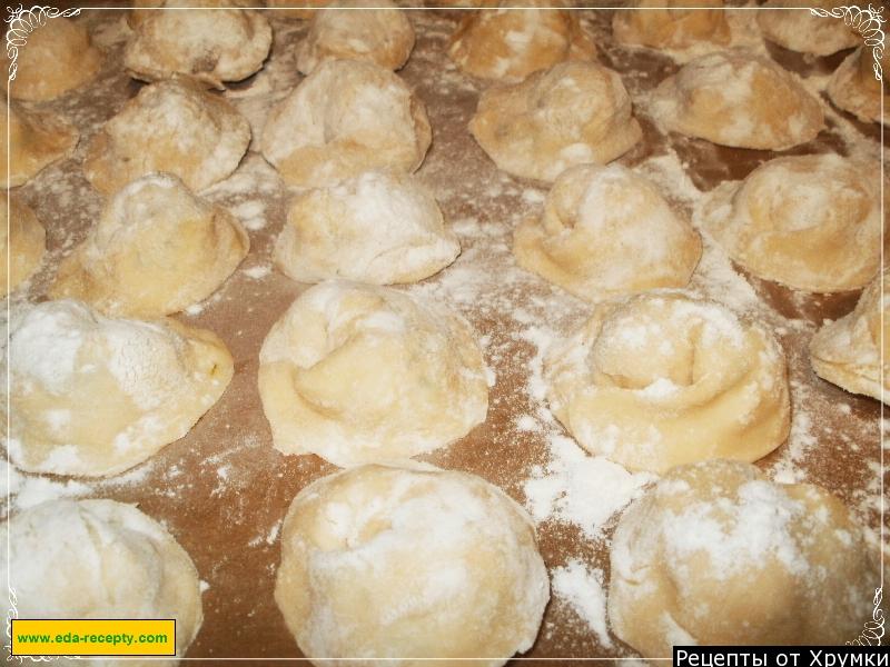 5. Пельмені складати на деко, покритий кулінарної папером і трохи присипати борошном, щоб не злипалися.